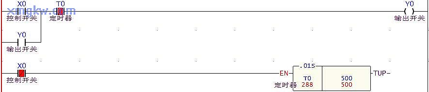 當開(kāi)關(guān) X0接通為 ON時(shí)燈 Y0亮,當開(kāi)關(guān) X0斷開(kāi)為 OFF時(shí),需再經(jīng)過(guò) 5秒鐘后 Y0燈才熄滅?!窘M件說(shuō)明】